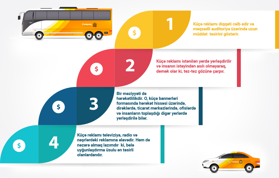 - Yolda və sair ictimai nəqliyyat daxilində sərnişinlərdə reklama maraq oyatmaq imkanı.